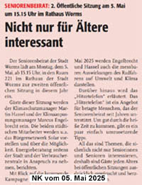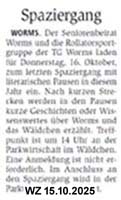 Das sind Artikel, die in der wormser Presse erschienen sind. WZ = Wormser Zeitung, erschent jeden Werktag und NK = Nibelungen Kurier, erscheint jeden Mittwoch und Samstag und WO!, das Wormser Stadtmagazin, erscheint jeden Monat.